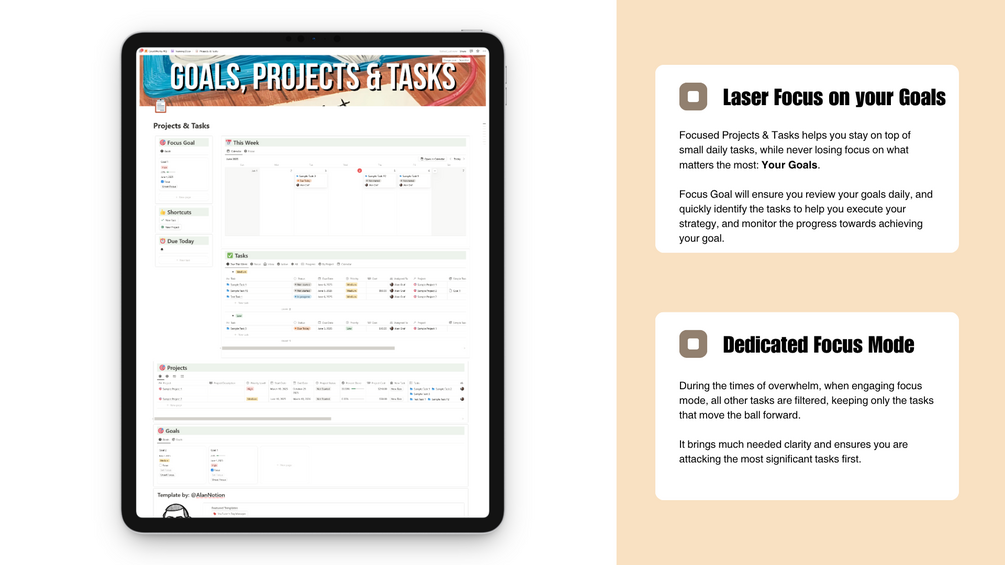 ✅ Goals Projects & Tasks: Provides clear, visual progress toward your goals