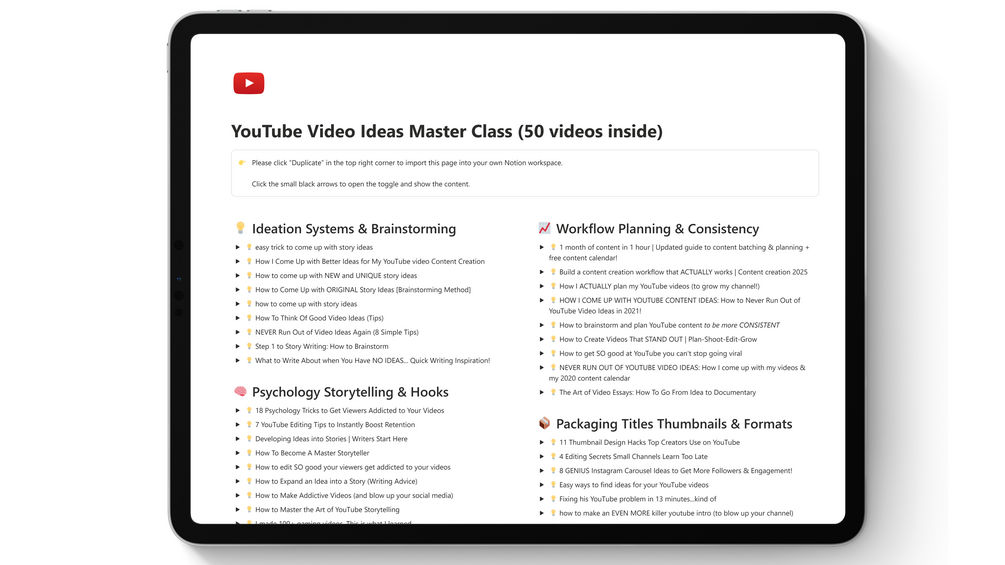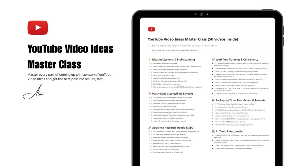 YouTube Video Idea Master Class